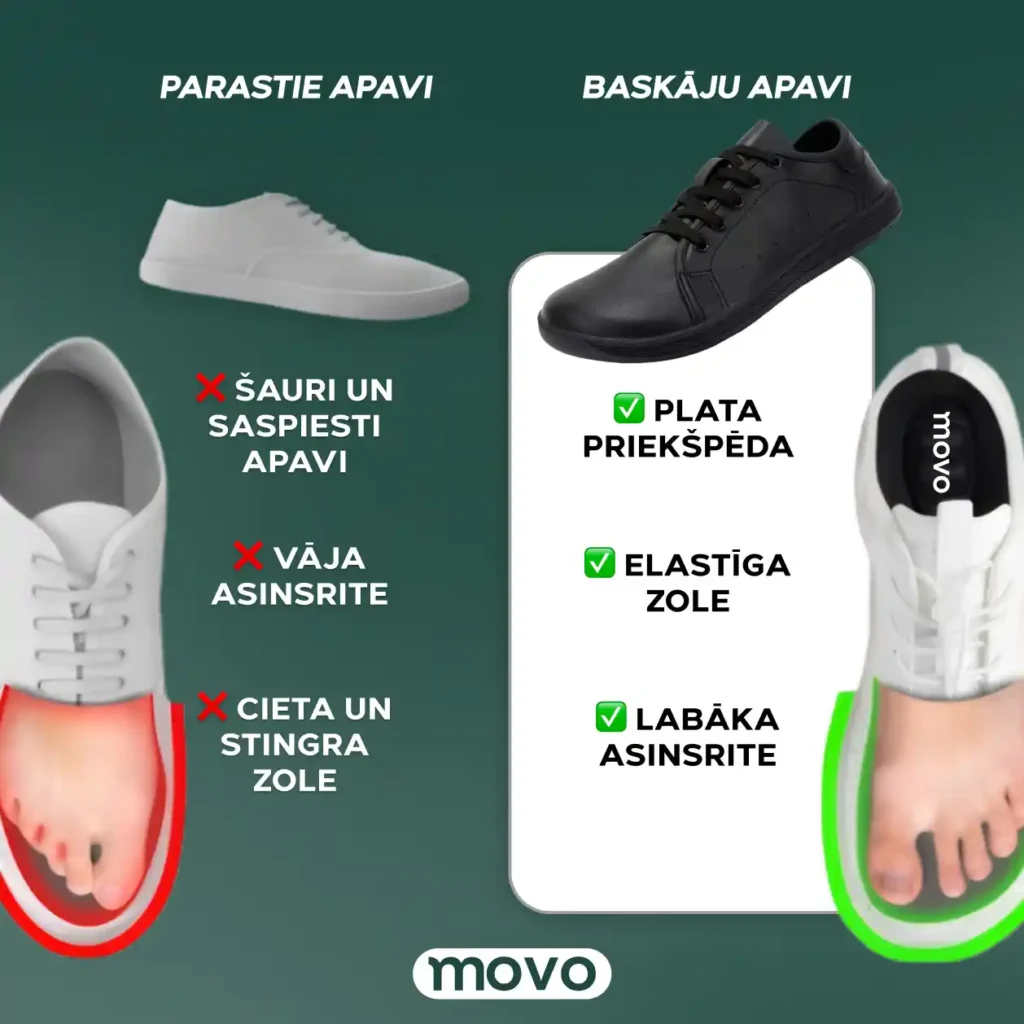 Izvēloties MOVO basos apavus, jūs izvēlaties komfortu, veselīgas pēdas un dabisku iešanas pieredzi.